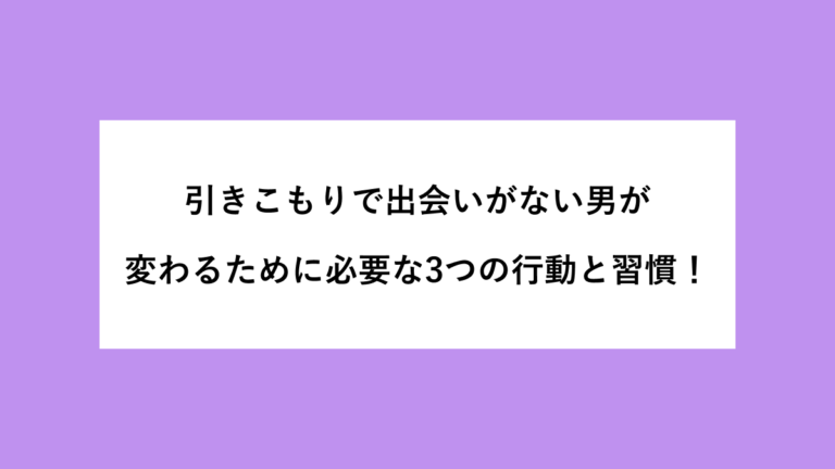 【PR】 引きこもりで出会いがないと悩んでいる男性は、少なくありません。 「どうせ自分には無理」「そもそも出会いの場に行けない」と感じて、行動を止めてしまっている方も多いのではないでしょうか。 こんな悩みを抱えていませんか。 外に出る機会が少なくて、女性と話す場面がまったくない 声をかけることが怖くて、いつも見ているだけで終わってしまう お金も見た目も自信がなくて、どうせ相手にされないと思っている […]