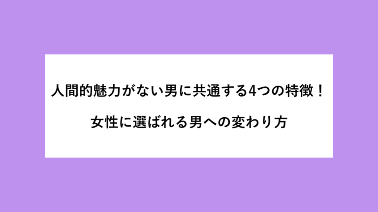 【PR】 「人間的魅力がない男」と言われると、なんとなくイケメンじゃないとか、お金がないとか、そういう話を想像するかもしれません。 でも実際は、もっと日常の小さなところに原因があります。 こんな悩みを感じていませんか? 女性と仲良くなれても、それ以上に進まない 「いい人だけど…」で終わってしまう 自分に魅力がない気がして、行動できない 何をすれば女性に好かれる男になれるのかわからない 結論を先にお […]
