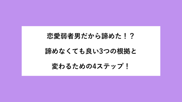 【PR】 「自分は恋愛弱者だから、もう諦めるしかない」と感じている男性は少なくないでしょう。 女性にアプローチして断られた、マッチングアプリで反応がない、周りだけがどんどん彼女を作っていく。 そういった経験が重なるうちに、いつの間にか「自分には無理だ」という結論に辿り着いてしまいます。 でも少し待ってください。 その諦めの結論、本当に正しいでしょうか。 多くの場合、恋愛弱者男が諦めてしまう理由は、 […]