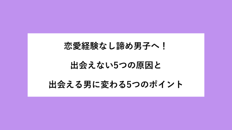 恋愛経験なし、このまま諦めるしかないのか、と感じている男性はたくさんいます。 この記事では、恋愛経験なし諦め男子が変われない原因と、経験ゼロから出会える男に変わるために知っておくべき5つの事実をまとめました。 こんな悩みを抱えていませんか。 女性に話しかける勇気がなく、そのまま時間だけ過ぎていく どうせ自分なんて、と思うとそれ以上動けない マッチングアプリも試したけど全然うまくいかない 経験がない […]