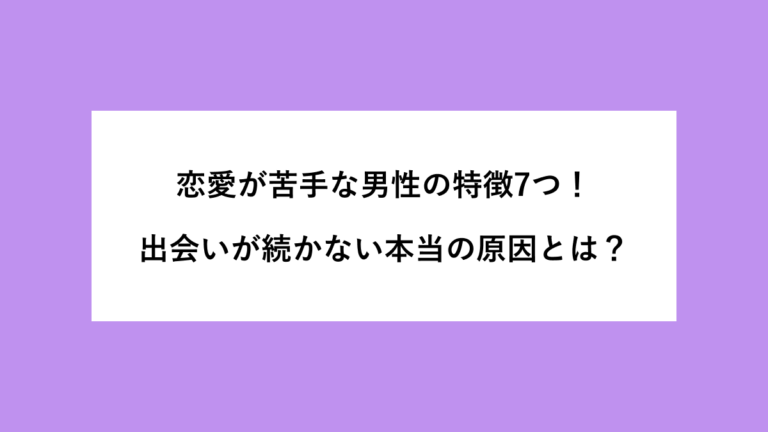 【PR】 「恋愛が苦手な男性の特徴って、自分のことかもしれない」と感じたことはありますか。 出会いが続かない、女性と話すとうまくいかない、行動しようとしても体が動かない。 そんな悩みを持つ男性は、実はとても多いです。 この記事では、こんな疑問にお答えします。 恋愛が苦手な自分には、どんな特徴があるのか 出会いが続かないのは何が原因なのか どうすれば苦手意識を乗り越えられるのか 結論から言うと、恋愛 […]